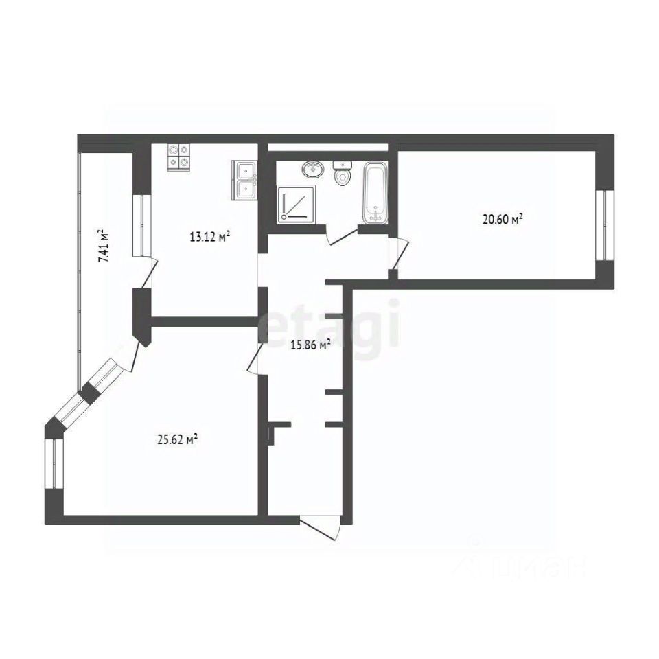 Шикарная планировка: две уютные спальни, большая кухня с выходом на лоджию — всё для вашего удобства и комфорта.