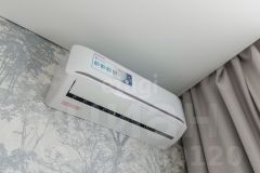 Планировка продумана до мелочей: небольшая, но очень комфортная квартирка площадью 25,5 м² с отдельной спальней — редкость для такого формата. Светлая, стильная, с большим кухонным гарнитуром, встроенной техникой и кондиционером. В санузле — красивый современный ремонт.