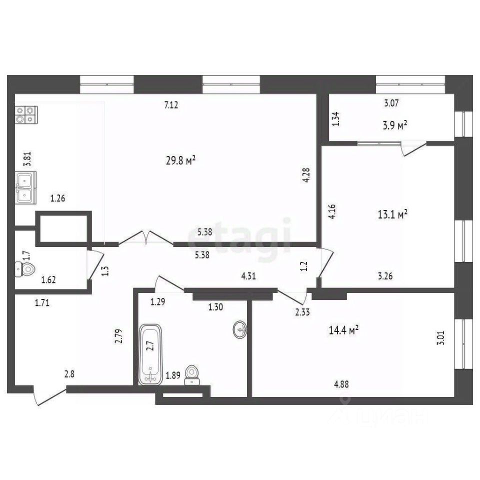 Квартира мебелирована, кухонный гарнитур, бытовая техника.