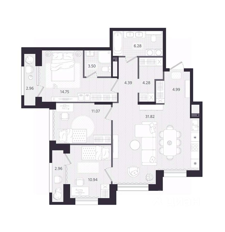 Продаётся 3-комнатная квартира в строящемся доме (ТЕМПЛИН), срок сдачи: II-кв. 2028, общей площадью 93.8 кв.м., на 7 этаже. Новый дом бизнес-класса расположится в районе Дома Печати на ул. Циолковского - в балансе между городской динамикой и комфортом уединения. Здесь всё под рукой, чтобы работать, встречаться и восстанавливаться, не теряя темпа.