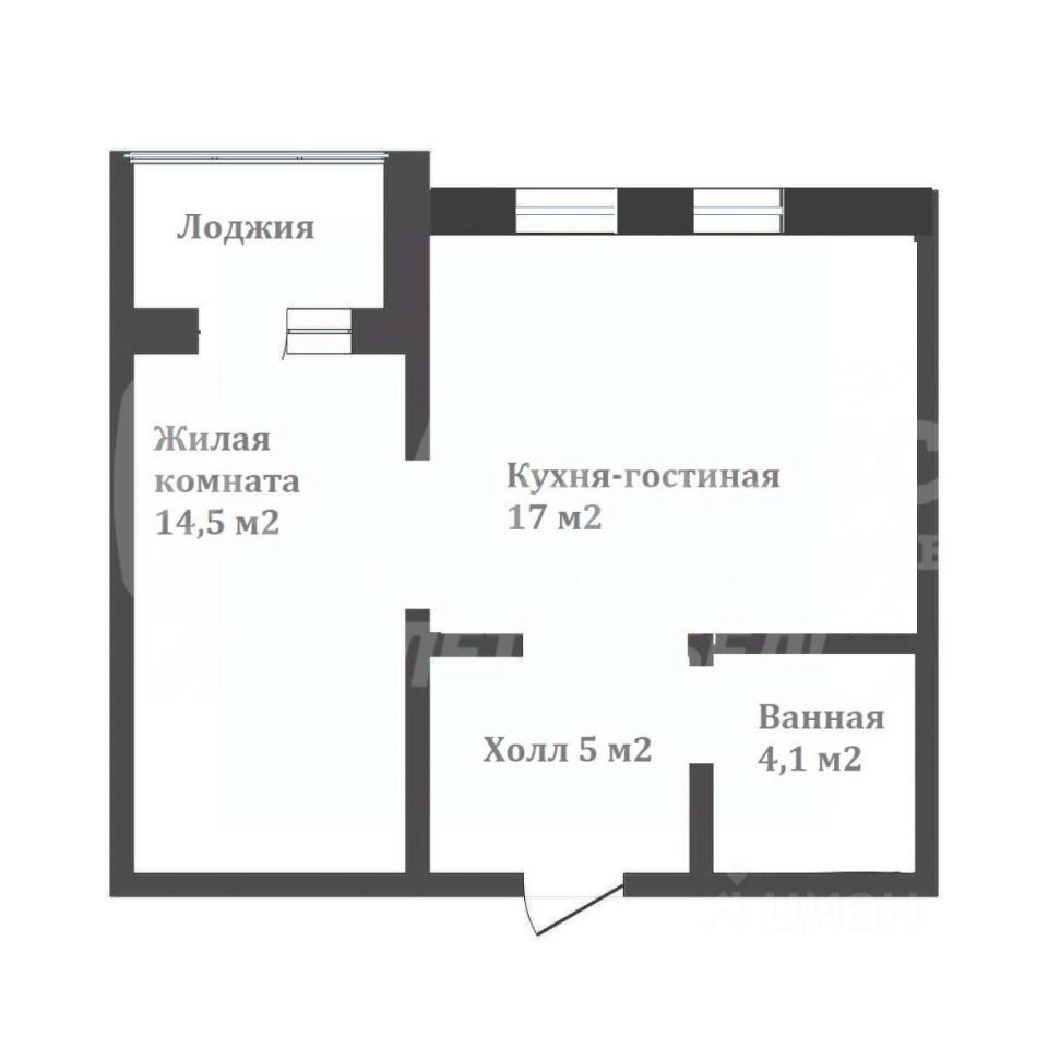 - кухня- гостиная с 2 окнами;