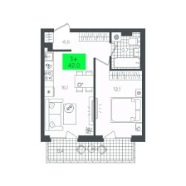Продается 1-комн. квартира, 42,08 м²