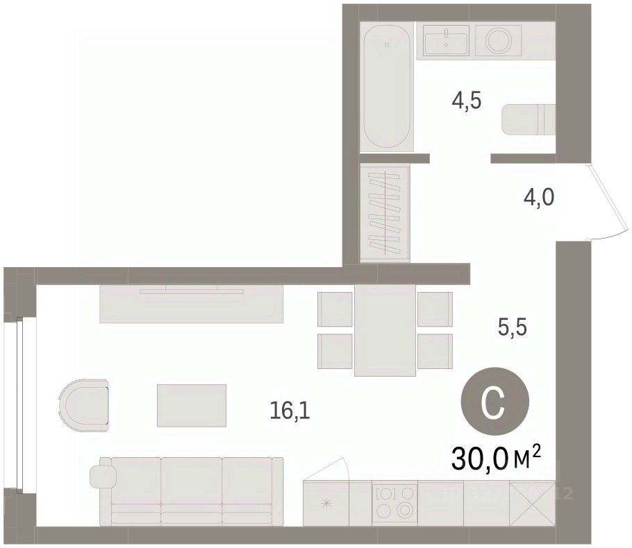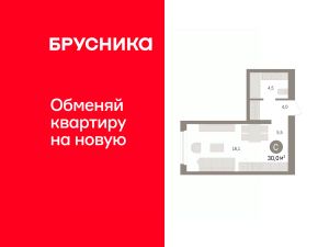 Просторная однокомнатная студия с предчистовой отделкой в ЖК "Зарека" на 3 этаже. Общая площадь: 30.01 кв.м. Высота потолков 2.7 м.