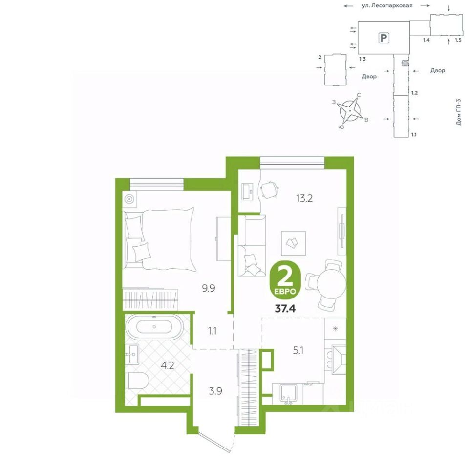 площадь квартиры - 37,4 кв.мГармоничные пропорции и большие окна наполняют пространство светом, создавая уютную атмосферу. Умное зонирование позволяет удобно организовать как рабочую, так и жилую зоны, что особенно важно для современных жителей. Санузел спроектирован с учетом всех потребностей: здесь есть ванна и место для стиральной машины. Каждый метр квартиры используется с максимальной эффективностью, что делает эту планировку отличным выбором для тех, кто ценит комфорт и удобство.