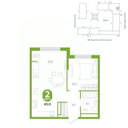 площадь квартиры - 43 кв.м