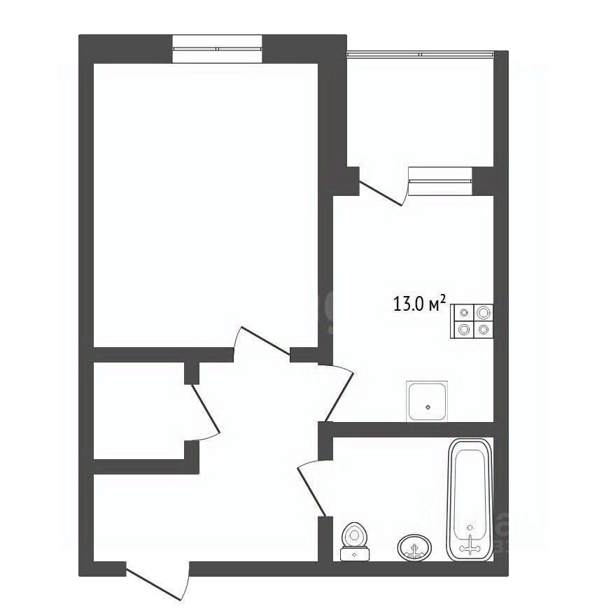 Безупречная планировка: Просторная комната, практичная кухня, вместительный санузел, удобная гардеробная и уютный балкон.
