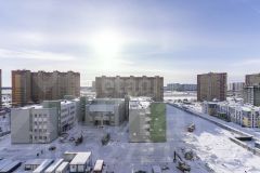 Расположение в современном районе МЖК, рядом с ТРЦ "Остров". В шаговой доступности — школы, детсады, магазины.