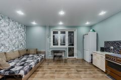 Сделан свежий ремонт, на полу линолеум хорошего качества, санузел в кафеле,натяжные потолки,пластиковые окна. Балкон застеклен пластиком. Высокие потолки. Оставят часть мебели и техники.