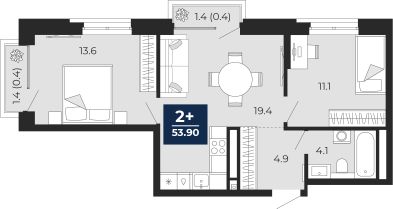 2-комн. квартира от застройщика с предчистовой отделкой в ЖК "Мириады" на 10 этаже. Общая площадь: 55.9 кв.м. Высота потолков 2.7 м.