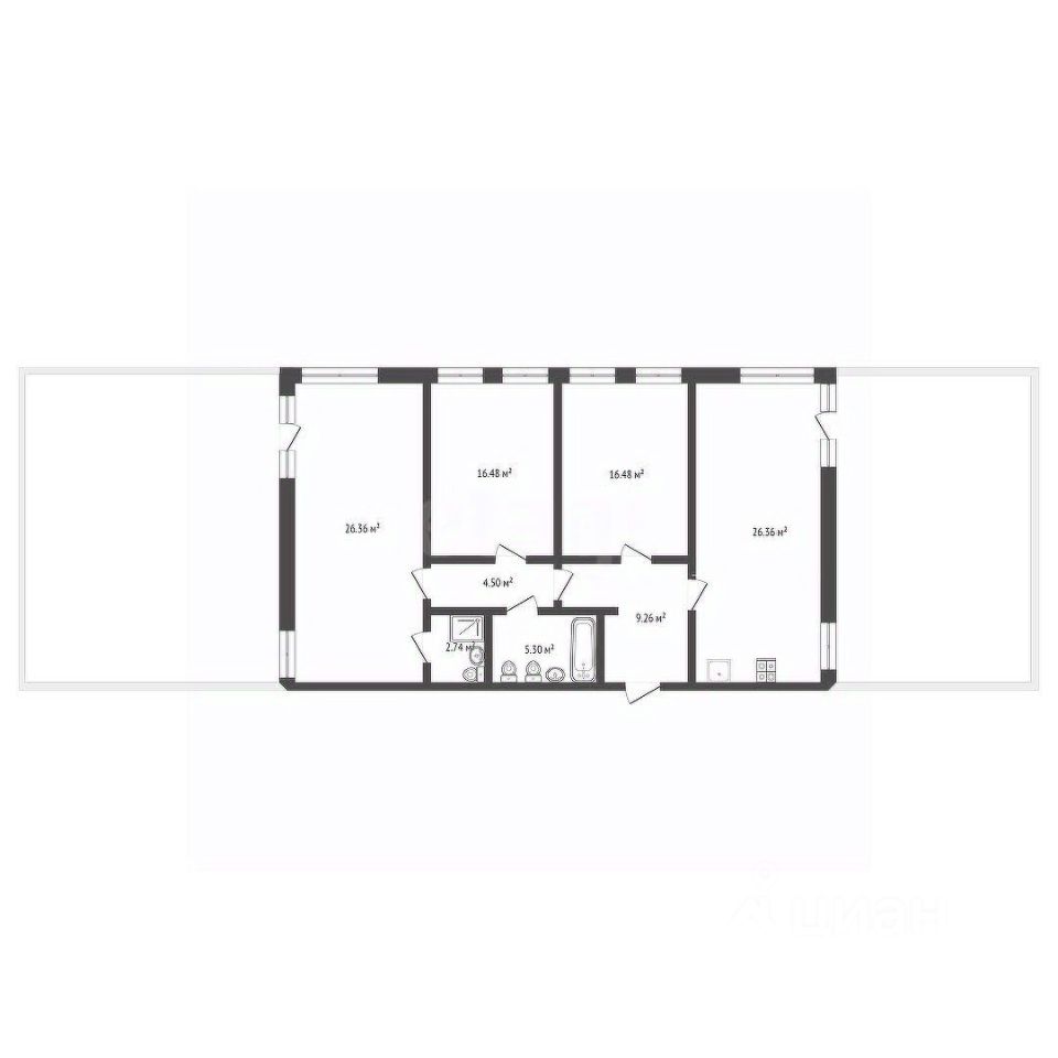 Квартира с двумя большими террасами , площадь обоих около 100 кв.м. Кухня- гостиная 26,36 кв.м. и три просторные спальни, одна из которых со своим сан.узлом. Есть еще один сан.узел 5,3 кв.м..Отделка улучшенная черновая, ровный пол, стены под маяк. Окна выходят во двор..