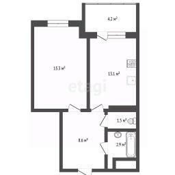 В просторной комнате легко размещается спальная и рабочая зона, в большой прихожей можно организовать гардеробную. Раздельный санузел в красивой плитке и застекленный большой балкон дополняют функциональность пространства. Во дворе оборудованы детская площадка, спортивный корт и парковочные места.