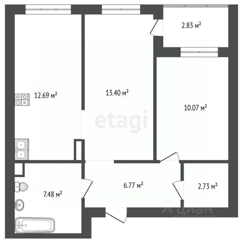 53.3м2+ теплая лоджия 2,83м2.