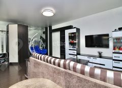 В квартире останется всё необходимое для комфортного проживания: шкаф-купе в спальне, диван в гостиной, кондиционер, корпусная мебель, кухонный гарнитур, холодильник, посудомоечная машина, вытяжка и обувщица в прихожей.