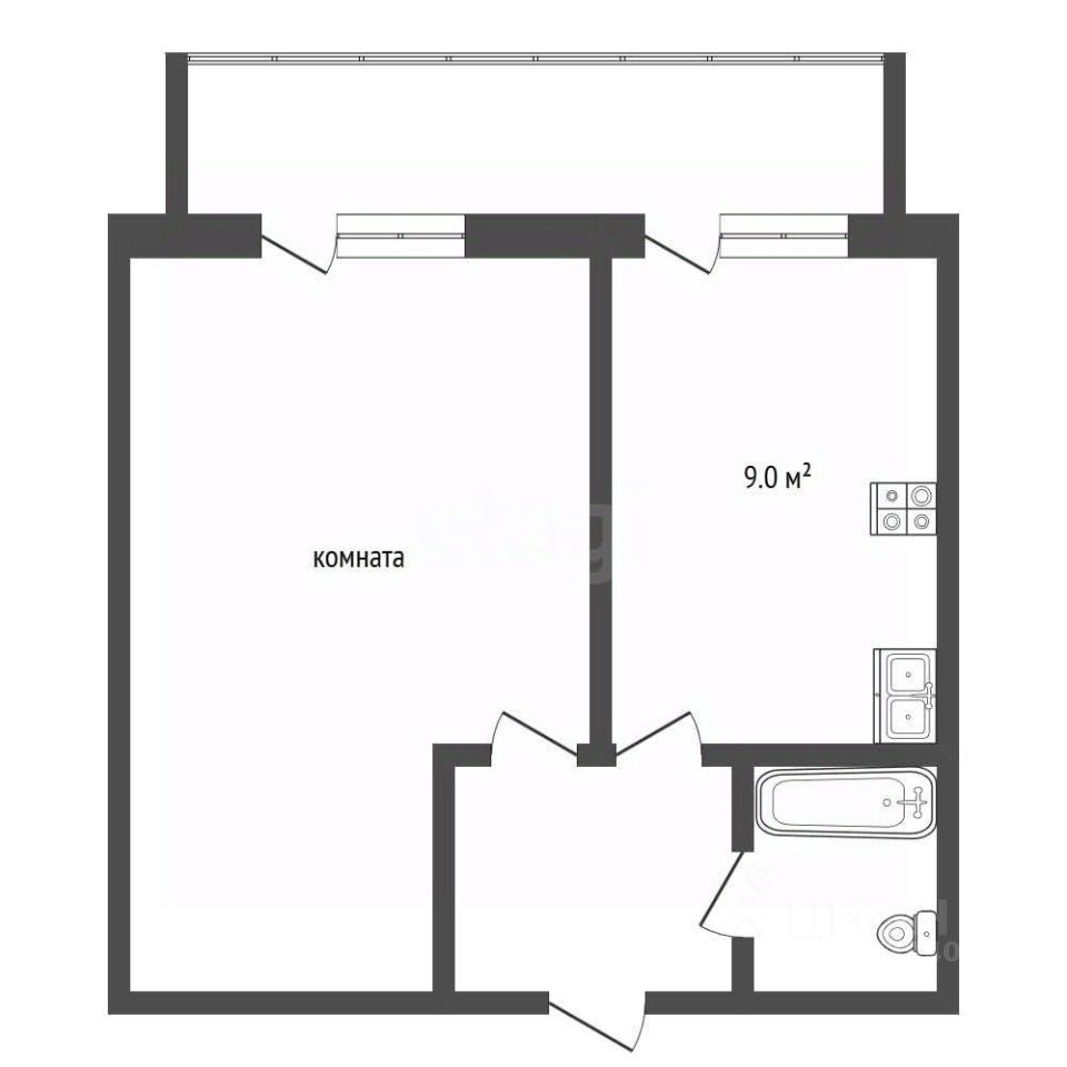 Просторная и светлая комната, функциональная планировка, просторная кухня-столовая. Санузел оборудован плиткой.