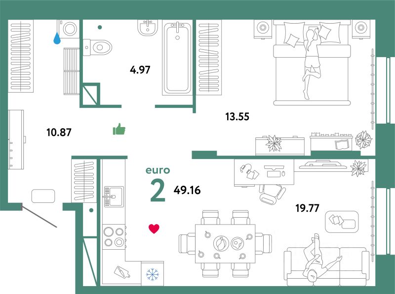 Продаётся 2-комнатная квартира в сданном доме (Интернациональная, 199к9 (ГП-1 Дом Синергия)), срок сдачи: I-кв. 2025, общей площадью 49.16 кв.м., на 3 этаже. Жилой комплекс "Юнион" - многоэтажные жилые дома с объектами инфраструктуры в границах улиц Интернациональная, Объездная дорога г. Тюмень от застройщика ГК Страна Девелопмент.