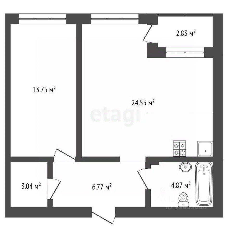53,3м2+ теплая лоджия 2,83м2.