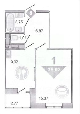 Планировка включает лоджию и отдельный санузел. Окна квартиры выходят во двор, что обеспечивает тишину и уединение.