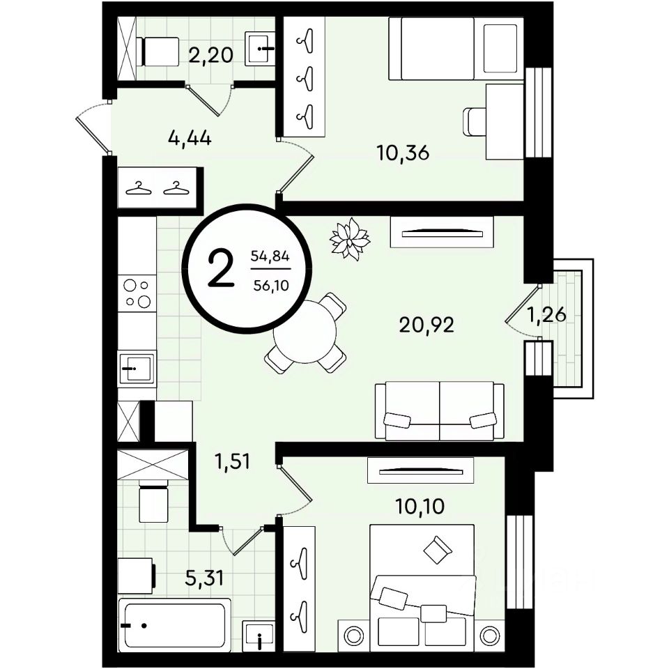 Общая площадь56,1 м²