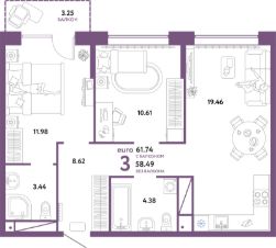 Продаётся 3-комнатная квартира в строящемся доме (Дом "Парковый" (ГП-13)), срок сдачи: I-кв. 2026, общей площадью 61.74 кв.м., на 10 этаже. Новый микрорайон "Домашний" от группы компаний "Страна Девелопмент" расположен в Калининском округе Тюмени, в районе аэропорта "Плеханово".