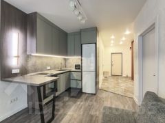 Всё, что вы видите на фото остается после продажи: новый стильный кухонный гарнитур, выполненный в красивом благородном темно-зеленом цвете, встроенная бытовая техника (варочная панель, духовой шкаф Electrolux, вытяжка), двухкамерный холодильник, микроволновая печь, диван, кровать с прикроватными тумбами, шкаф-купе в прихожей, стиральная машина, осветительные приборы и оконный текстиль.