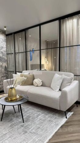 Интерьер выполнен в приятной теплой светлой гамме. Квартира выглядит дорого и элегантно.