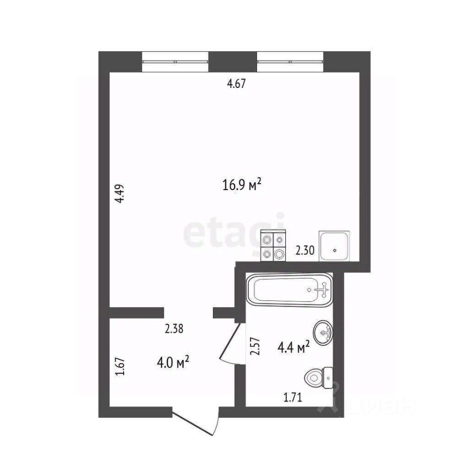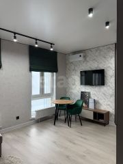 Планировка студии — правильной формы, без лишних выступов и неудобных углов, что позволяет грамотно зонировать пространство и создать комфортное жильё. Благодаря большой площади здесь легко разместится всё необходимое для жизни. В ней есть все для комфортной жизни (вся кухонная техника, встроенная мебель, стиральная машина, кондиционер)