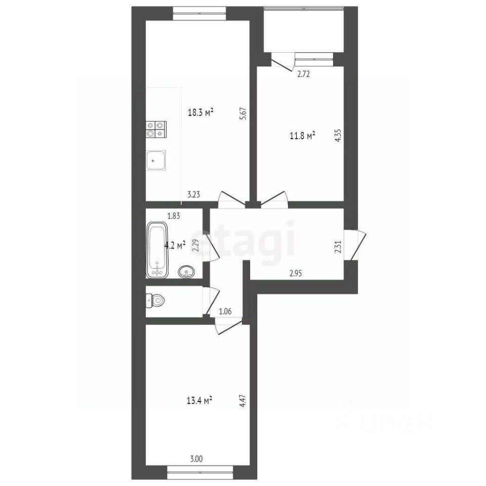 Продам стильную 2-комнатную квартиру 65,7 м² с балконом.