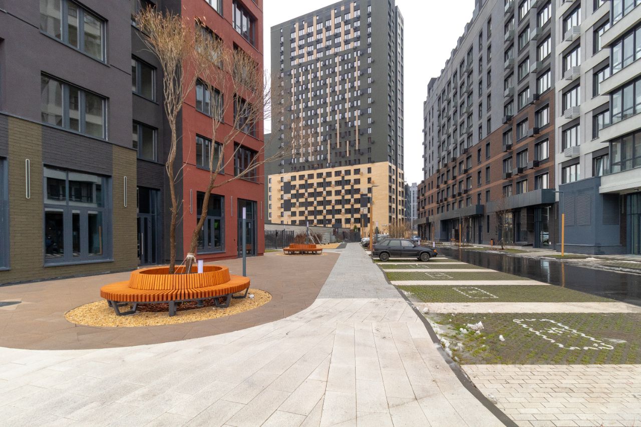 Жилой комплекс обеспечивает высокий уровень безопасности и комфорта благодаря закрытой территории с контролируемым доступом. Огороженная зона с благоустроенными дворами создает приватную среду, защищенную от уличного шума и постороннего внимания. В пешей доступности находятся два детских сада, общеобразовательные школы, поликлиника, спортивная школа и школа искусств, что делает локацию особенно привлекательной для семей с детьми. Повседневные потребности жителей покрывают Алебашевский базар и торговый центр Зеленый берег, где представлены магазины, кафе и сервисные услуги.