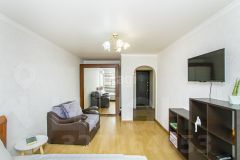 В квартире остается все необходимое для комфортной жизни: кухонный гарнитур с керамической плитой, уютная столовая группа, мебель в ванной, а также кровать, шкаф и навесной стеллаж в комнате. Просторный балкон с пластиковыми стеклопакетами станет вашим любимым местом для отдыха — там проведены свет и розетка, а отделка выполнена с душой.