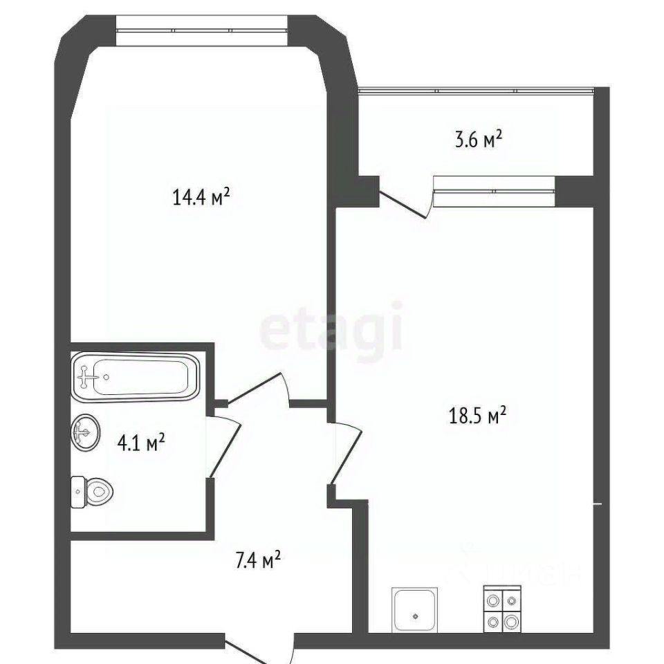 Однокомнатная квартира формата 1+, 48 м² в ЖК "Космо"