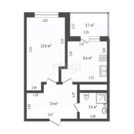 Кухня 8,6 кв.м. с выходом на лоджию. Комната 13 кв.м. Есть функциональная, очень вместительная гардеробная 180 на 150 см.