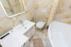 Ремонт полностью выполнен с соблюдением всех стандартов из качественных материалов: выполнена электрическая разводка, заложены провода под сплит систему, на полу кварцвинил, итальянские обои(моющиеся)-эффект окрашенных стен, цельные скрытые карнизы с подсветкой (что заменяет полностью вечернее освещение), натяжные потолки по всей квартире по периметру модный теневой профиль (без заглушек), ванна - световой потолок транслюцидное полотно полностью, шинопровода встроены в скрытый трек. Вся мебель высокого качества, все остается как есть, бытовая техника (стиральная машинка, посудомойка, холодильник, варочная поверхность, микроволновка, ультрамодная многофункциональная нано-мойка (имеет пазы для доски, 2 контейнера для разморозки и мытья фруктов, шайба для мытья стаканов, функция вытяжной кран, питьевой кран) все новое. В Сан.узеле - инсталляция,подвесная тумба зеркало с подсветкой, тропический душ.