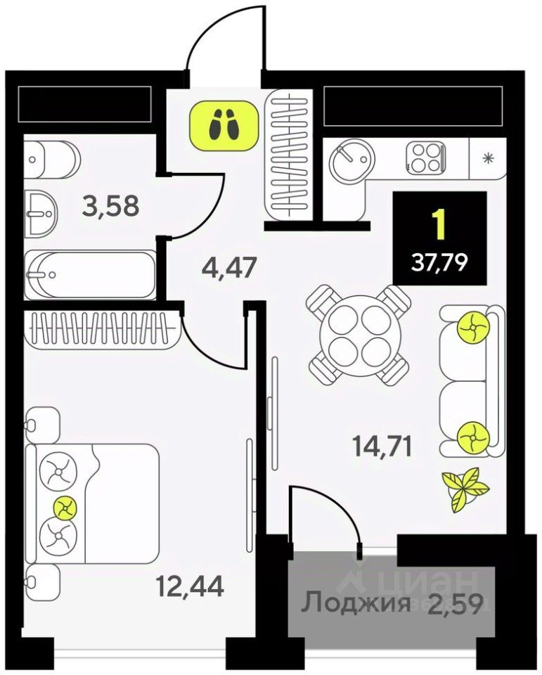 Общая площадь37,79 м²