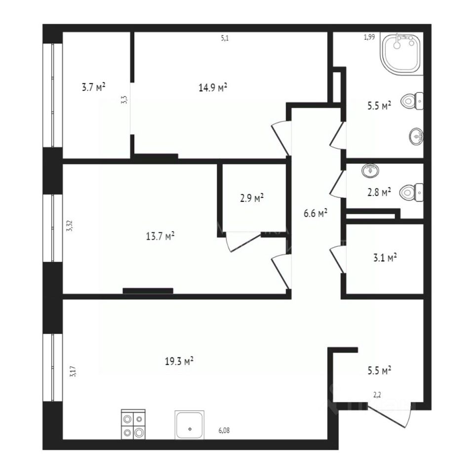 19 м²