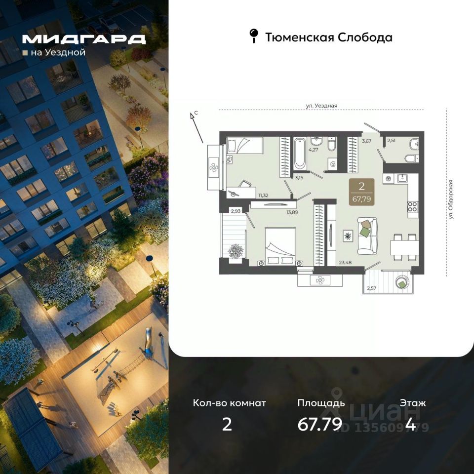 Двухкомнатная квартира от застройщика в ЖК "Мидгард на Уездной" на 4 этаже. Квартира без отделки, полностью готова к ремонту. Общая площадь: 67.79 кв.м., жилая: 25.21 кв.м., площадь просторной кухни-столовой: 23.48 кв.м. Угловая квартира, окна oбecпeчивaют paвнoмepнoe ocвeщeниe в тeчeниe дня. В квартире один балкон, один совмещенный и один раздельный санузел. Высота потолков 2.72 м.