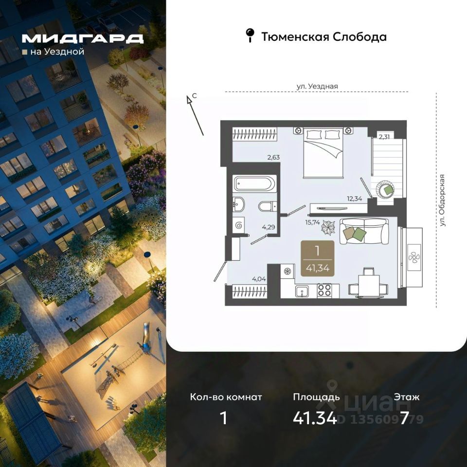 Продается однокомнатная квартира в ЖК "Мидгард на Уездной" на 7 этаже. Квартира без отделки, полностью готова к ремонту. Общая площадь: 41.34 кв.м., жилая: 12.34 кв.м., площадь просторной кухни-столовой: 15.74 кв.м. Все окна выходят на одну сторону. В квартире одна лоджия, один совмещенный санузел. Высота потолков 2.72 м.