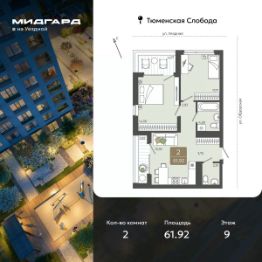 Продается 2-комн. квартира в ЖК "Мидгард на Уездной" на 9 этаже. Квартира без отделки, после выдачи ключей можно делать ремонт. Общая площадь: 61.92 кв.м., жилая: 26.01 кв.м., площадь просторной кухни-столовой: 15.35 кв.м. Квартира угловая, очень светлая, естественная вентиляция при открытии окон. В квартире две лоджии, один совмещенный и один раздельный санузел. Терраса представляет собой роскошную зону отдыха для проведение вечеров в кругу семьи и друзей или организация вечеринок. Высота потолков 2.72 м.