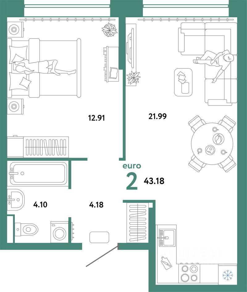 Продаётся 2-комнатная квартира в строящемся доме (Дом "Гостеприимный" (ГП-15)), срок сдачи: I-кв. 2026, общей площадью 43.18 кв.м., на 3 этаже. Новый микрорайон "Домашний" от группы компаний "Страна Девелопмент" расположен в Калининском округе Тюмени, в районе аэропорта "Плеханово".