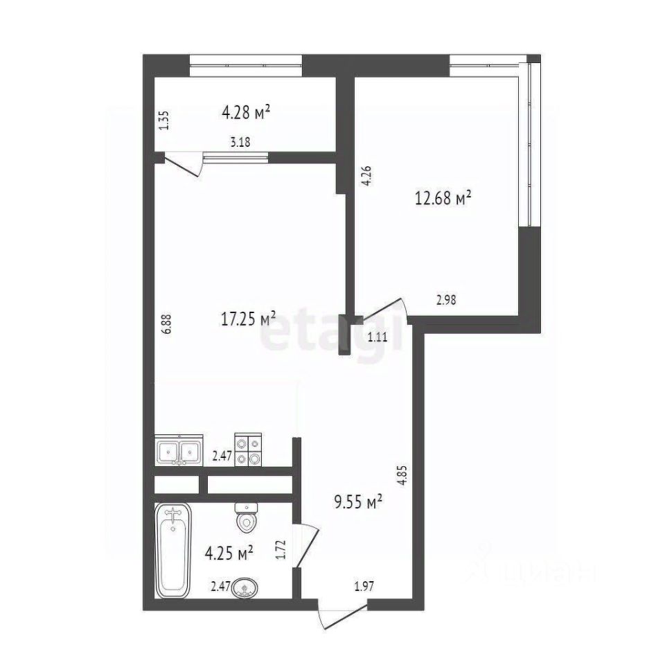 Квартира находится в доме комфорт класса ЖК LIFE RESIDENCE на 7 этаже, площадь 46 кв.м. с панорамным окном! Квартира формата 1+ или евродвушка, хорошая кухня-гостиная и комната, вместительный коридор.