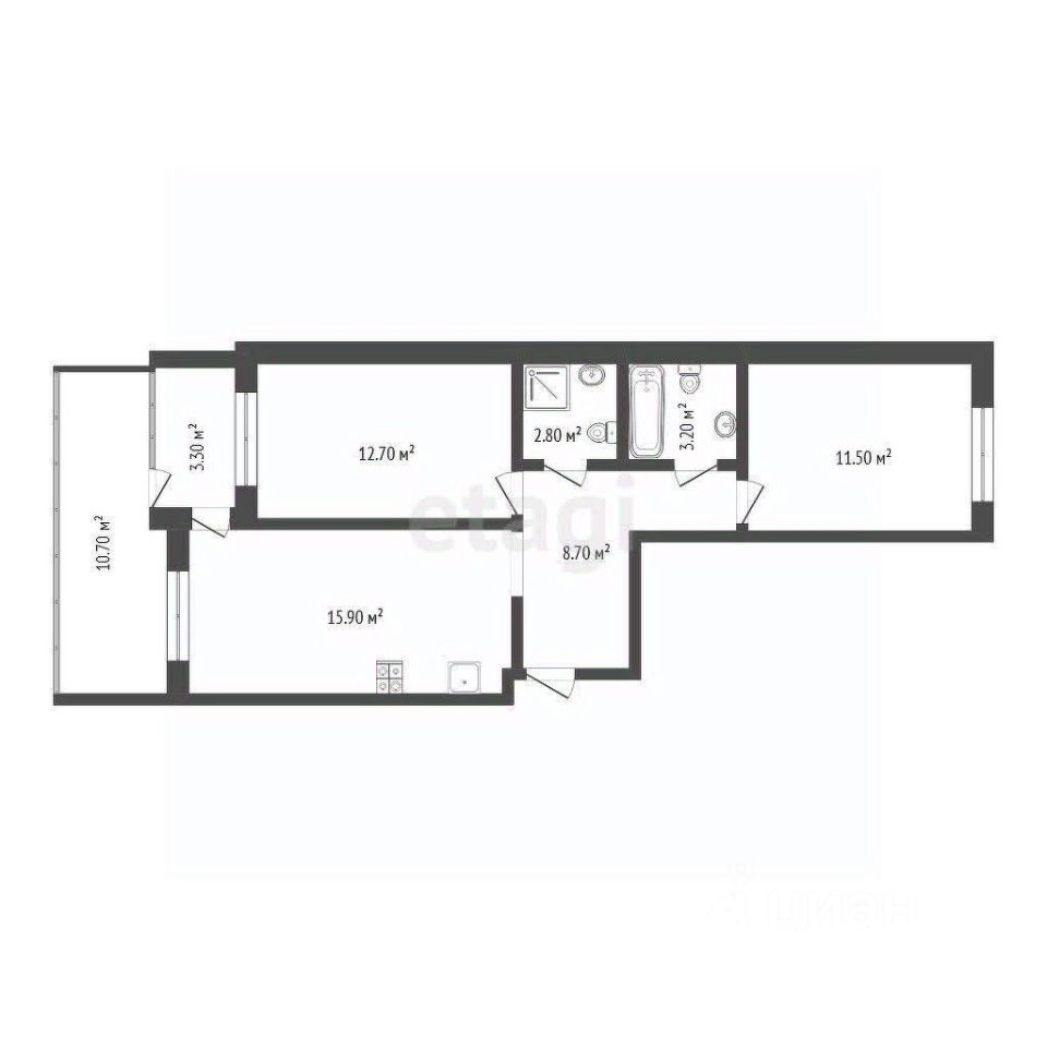 Общая площадь55,5 м²