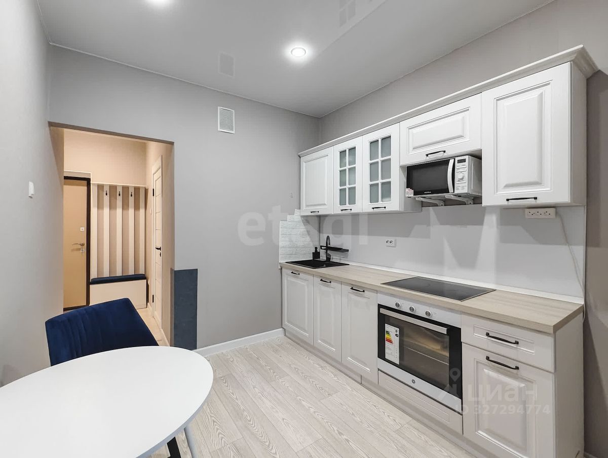 Уютная и современная кухня с гарнитуром и встроенной техникой. Просторная комната (15,1 м²) легко вмещает спальное место и рабочую зону. Большая лоджия с витражными окнами — много света и приятные вечера с видом с 8 этажа.