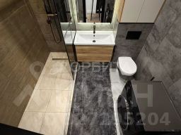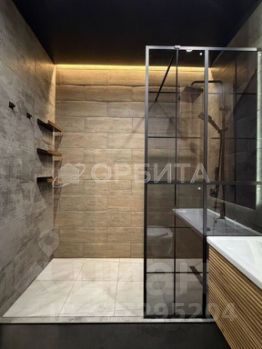 Просторная гардеробная комната, совмещённый санузел с эффектом парящего потолка.