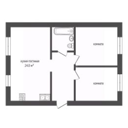 Кухня - гостиная и 2 спальные комнаты 24кв.м. и 17кв.м., потолки 2,70 м.,