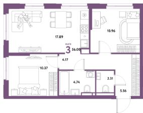 Продаётся 3-комнатная квартира в строящемся доме (Дом "Майорка" (3 этап, Краснооктябрьская, 10к3)), срок сдачи: IV-кв. 2028, общей площадью 56 кв.м., на 6 этаже. Новый жилой комплекс "Остров-сад" от Специализированного застройщика "Страна. Коммунистическая" расположен по адресу: г. Тюмень, по ул. Ярославская.