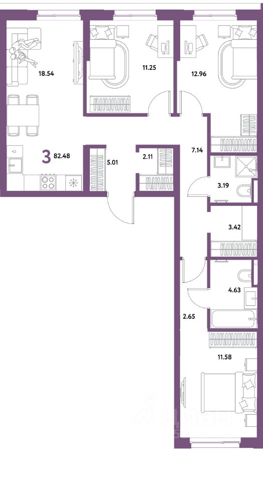 Продаётся 3-комнатная квартира в строящемся доме (Дом "Майорка" (3 этап, Краснооктябрьская, 10к3)), срок сдачи: IV-кв. 2028, общей площадью 82.48 кв.м., на 4 этаже. Новый жилой комплекс "Остров-сад" от Специализированного застройщика "Страна. Коммунистическая" расположен по адресу: г. Тюмень, по ул. Ярославская.