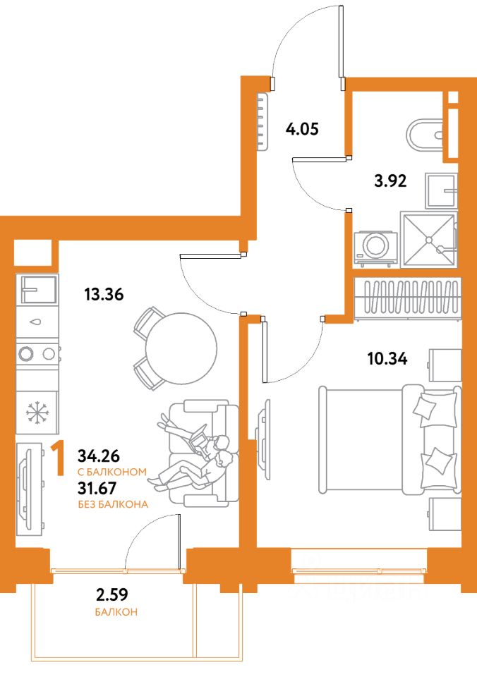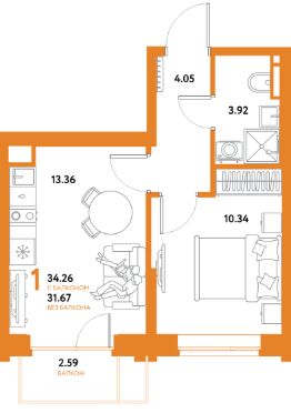 Продаётся 1-комнатная квартира в строящемся доме (Дом "Майорка" (1 этап, Краснооктябрьская, 10к1)), срок сдачи: IV-кв. 2028, общей площадью 34.26 кв.м., на 6 этаже. Новый жилой комплекс "Остров-сад" от Специализированного застройщика "Страна. Коммунистическая" расположен по адресу: г. Тюмень, по ул. Ярославская.