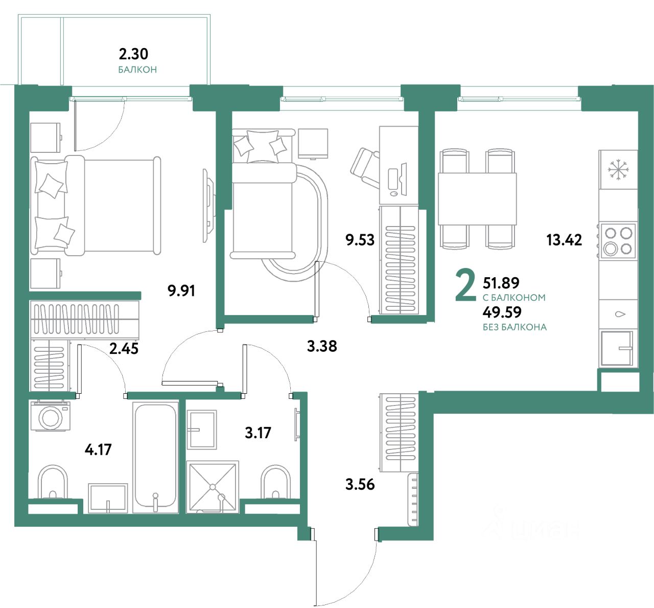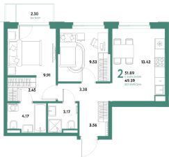 Продаётся 2-комнатная квартира в строящемся доме (Дом "Майорка" (1 этап, Краснооктябрьская, 10к1)), срок сдачи: IV-кв. 2028, общей площадью 51.89 кв.м., на 10 этаже. Новый жилой комплекс "Остров-сад" от Специализированного застройщика "Страна. Коммунистическая" расположен по адресу: г. Тюмень, по ул. Ярославская.