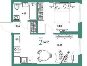 Продаётся 2-комнатная квартира в строящемся доме (Дом "Майорка" (1 этап, Краснооктябрьская, 10к1)), срок сдачи: IV-кв. 2028, общей площадью 36.57 кв.м., на 6 этаже. Новый жилой комплекс "Остров-сад" от Специализированного застройщика "Страна. Коммунистическая" расположен по адресу: г. Тюмень, по ул. Ярославская.