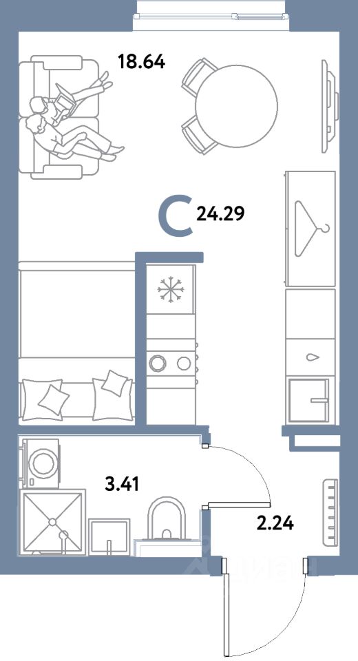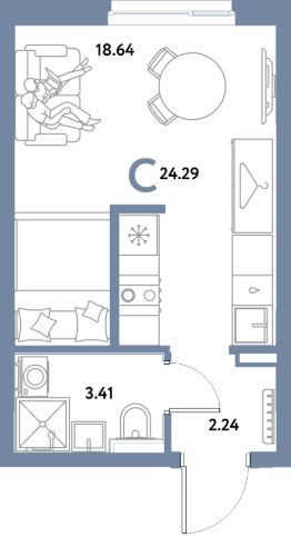 Продаётся студия в строящемся доме (Дом Тенерифе (ГП-2Я)), срок сдачи: IV-кв. 2027, общей площадью 24.29 кв.м., на 17 этаже. Новый жилой комплекс "Остров-сад" от Специализированного застройщика "Страна. Коммунистическая" расположен по адресу: г. Тюмень, по ул. Ярославская.