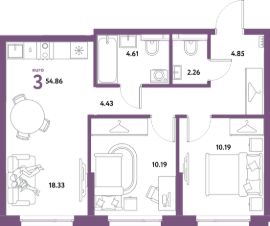 Продаётся 3-комнатная квартира в строящемся доме (Дом Тенерифе (ГП-2Я)), срок сдачи: IV-кв. 2027, общей площадью 54.86 кв.м., на 2 этаже. Новый жилой комплекс "Остров-сад" от Специализированного застройщика "Страна. Коммунистическая" расположен по адресу: г. Тюмень, по ул. Ярославская.